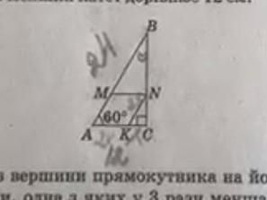 у прямокутний трикутник ABC C = 90° A=60° вписано ромб AMNK так що кут Aу них спільний, а всі вершини ромба лежать на сторонах трикутника. знайдіть периметр ромба, якщо гіпотенуза дорівнює 33см