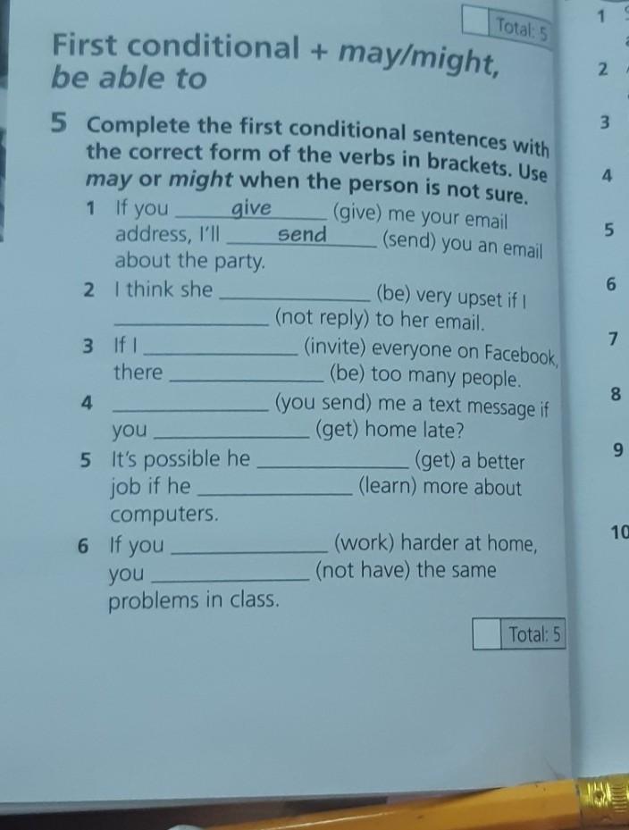 2 - she will be/do notreply 3 - if i will invite/there will be 4 - how will you send/if you come home late 5 - will get/will learn 6 - work/won't have