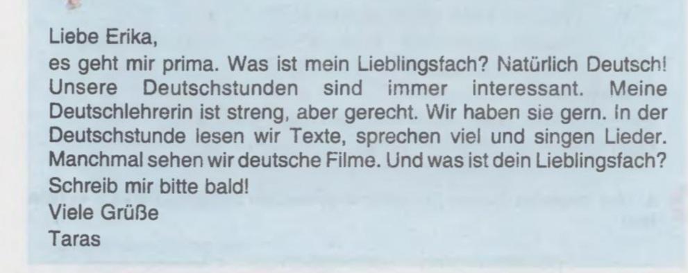 Lies den Brief von Taras und beantworte die Fragen. Schreibe in dein Heft.