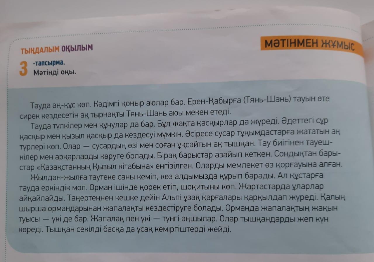 - Мәтінде қай жануар "Қазақстанның қызыл кітабына" енген?