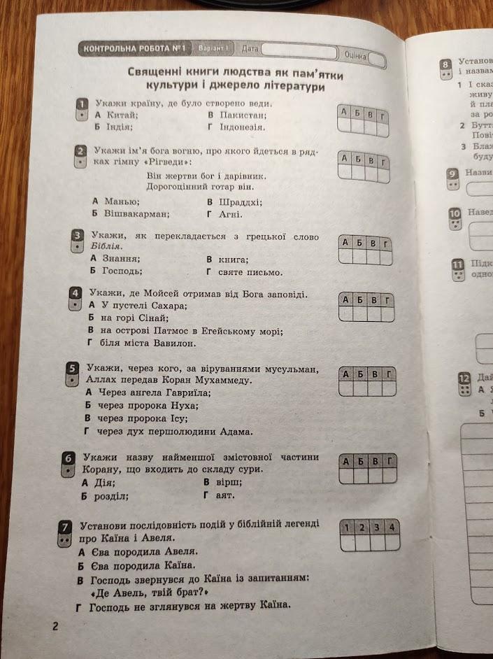 Будь ласка допоможіть Контрольна робота. Священні книги людства як пам'ятки культури і джерело літератури з зарубіжної нічого не знаю відповідей немає ні де