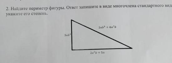2. Найдите периметр фигуры. Ответ запишите в виде многочлена стандарт укажите его степень.