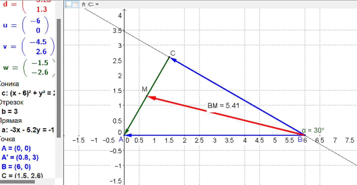 ВМ = √((3√3)² + (3/2)²) = √(27 + (9/4)) = √(117/4) = √117/2 ≈ 5,4083.
