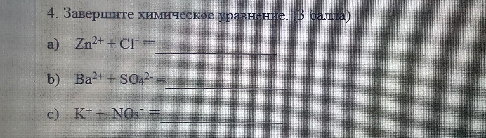 СРОЧНОООО ПОМОГИТЕ С СОЧЕМ ПО ХИМИИИИ!!! Завершите химическое уравнение. a) Zn^²+ + C1^- =______