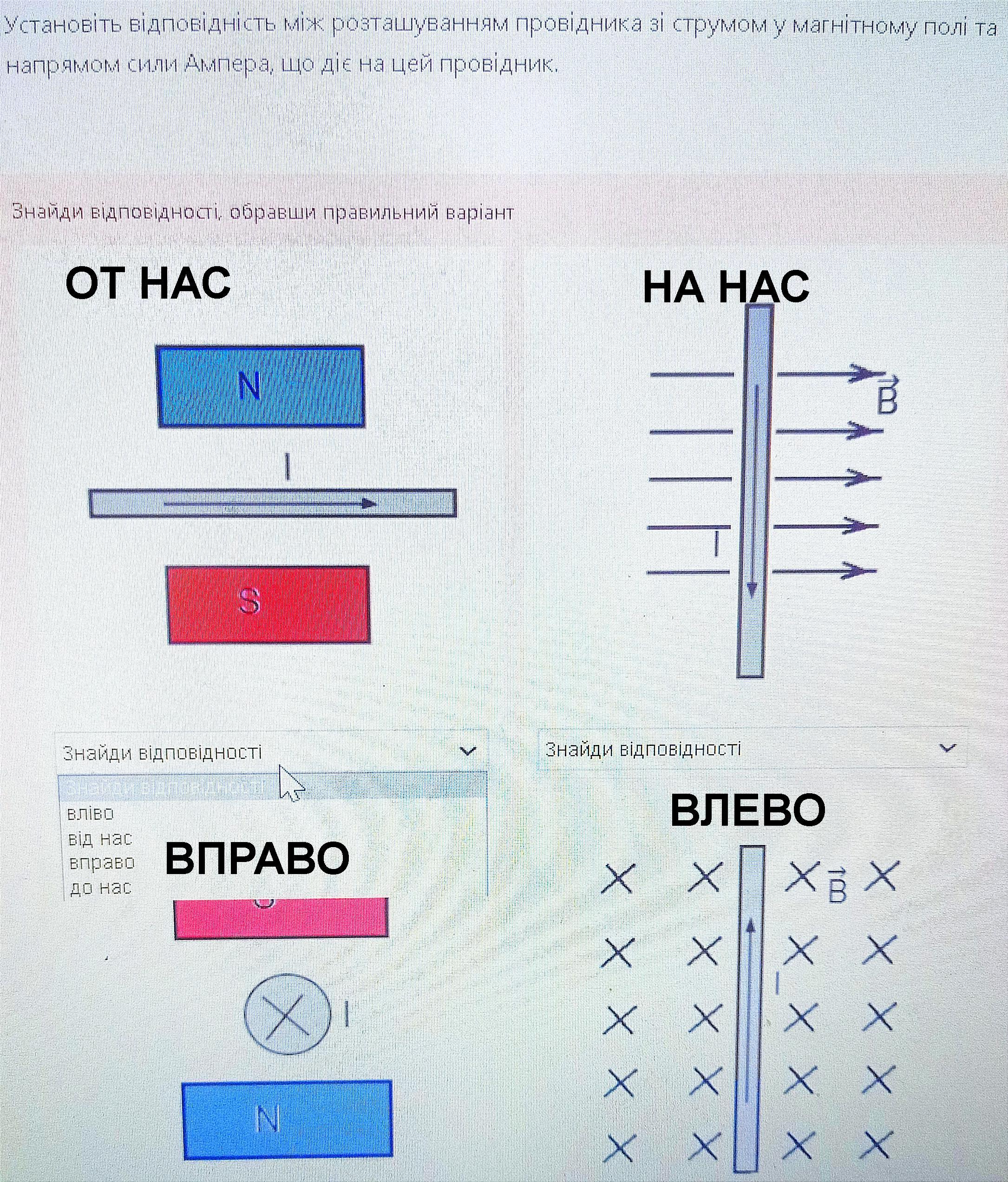 Вектор В идет от N к S.