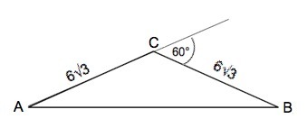 В треугольнике ABC AC=BC=6 Корней из 3 см, внешний угол при вершине С равен 60 град.Найдите длину АВ.