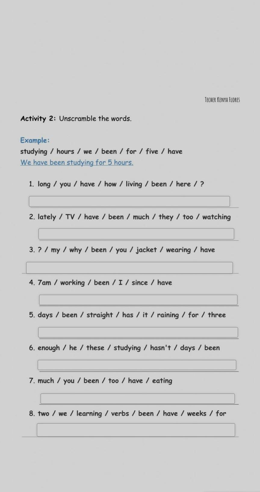 8. We have been learning verbs for two weeks