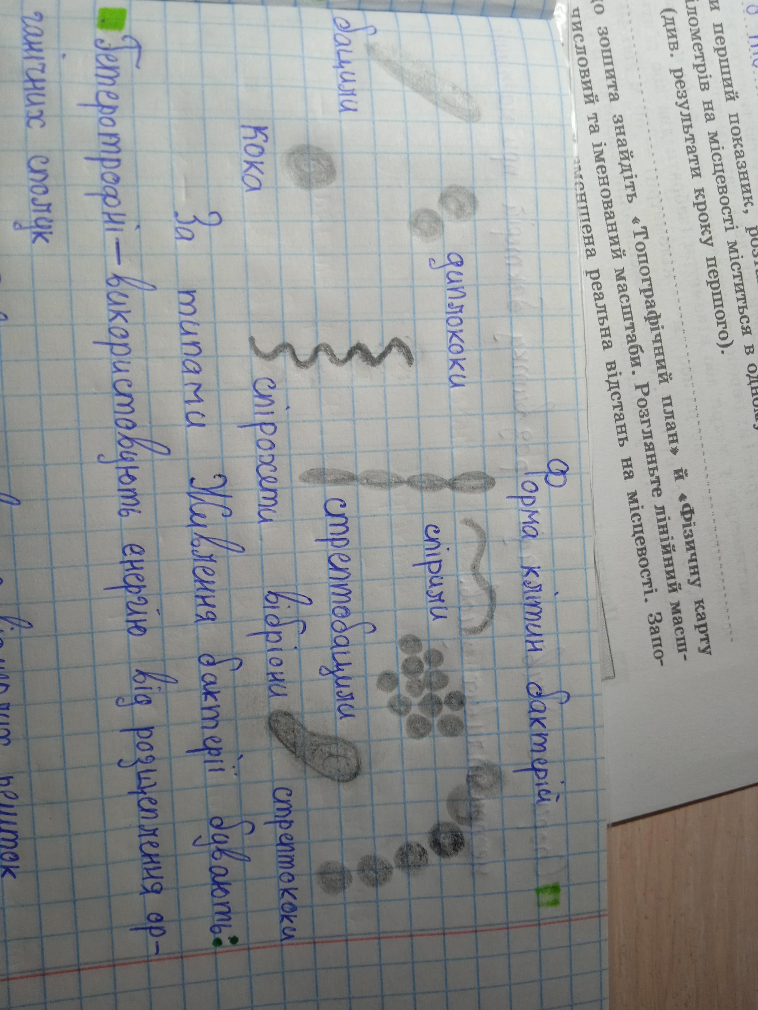 Замалювати основні форми клітини бактерії:коки,бачили,вібріони,спірили.