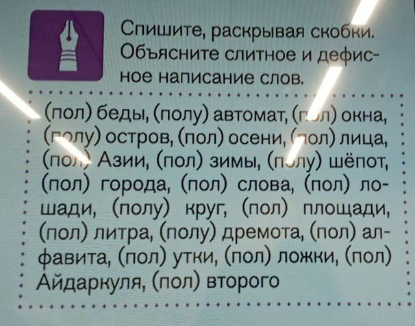 ПОМОГИТЕ !!!! Спишите, раскрывая скобки. Объясните слитное и дефис- ное написание слов. (пол) беды, (полу) автомат, (г.л) окна, (голу) остров, (пол) осени, (пол) лица, (пол.) Азии, (пол) зимы, (плу) шëпот, (пол) города, (пол) слова, (пол) ло- шади, (полу) круг, (пол) площади, (пол) литра, (полу) дремота, (пол) ал- фавита, (пол) утки, (пол) ложки, (пол) Айдаркуля, (пол) второго