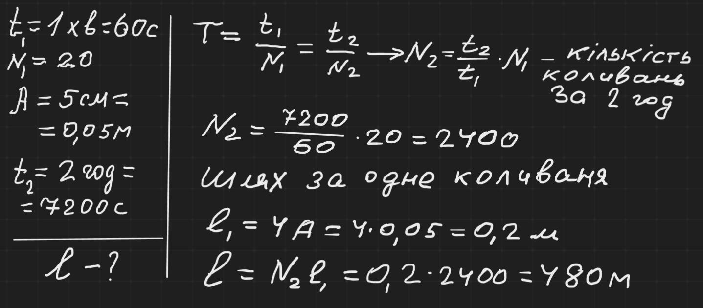 вав за 1 хв 20 коливань. Амплітуда коливань поплавка дорівнювала 5 см. «Ціка-