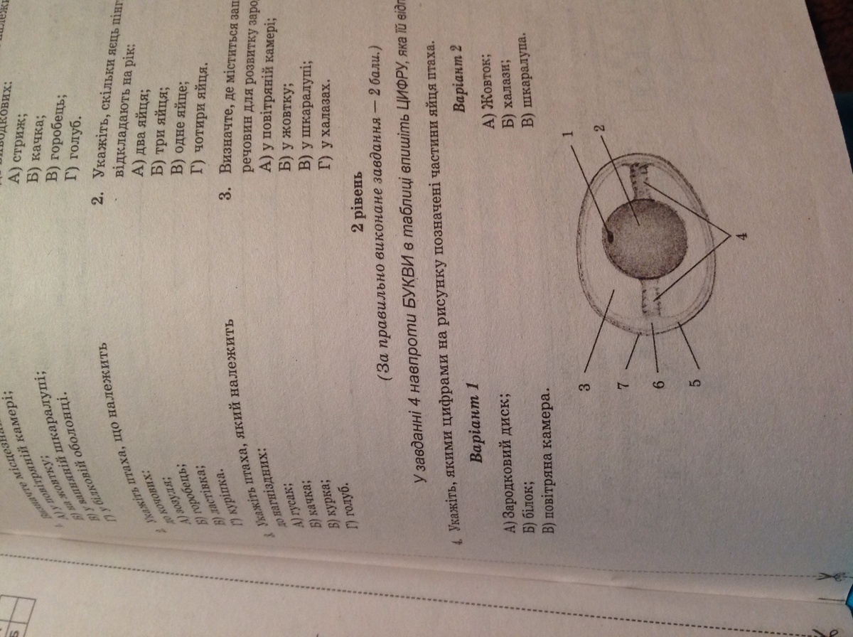 1) - б); 2) - г); 3) - г); 4) зародковий диск - 1, пов. камера - 6; 6) Комахоїдні, тому що комах стає менше і їм нічого їсти.