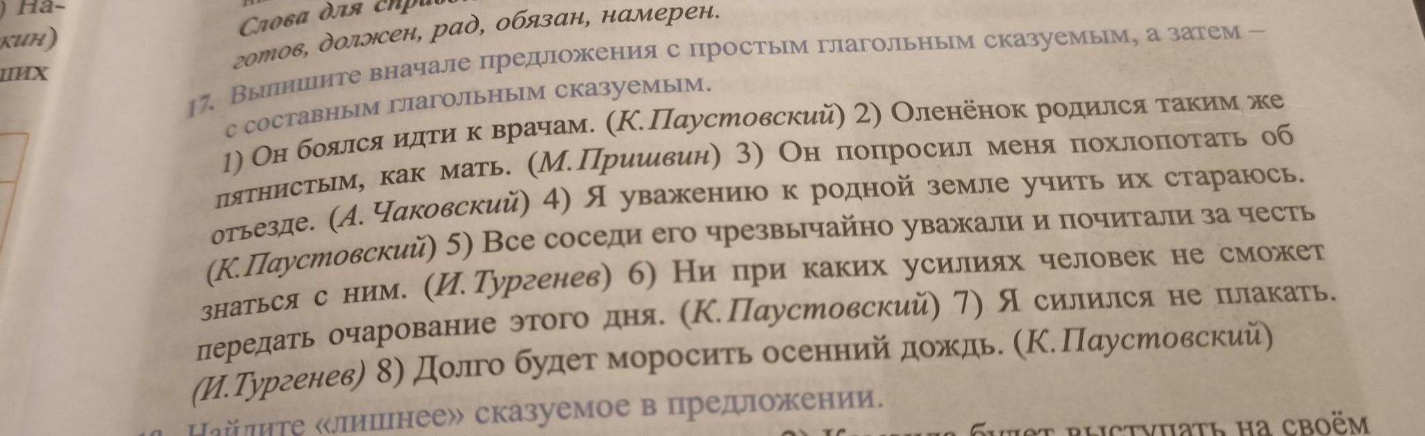 Выпишите вначале предложения с простым глагольным сказуемым, а затем с составным глагольным сказуемым.
