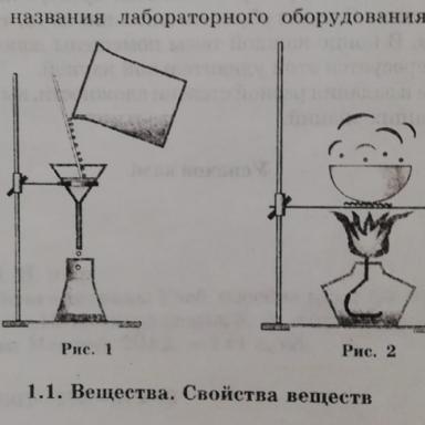 плоскадонная колба, штатив, химический стакан, варонка, палочка. рис. 2 спиртовка, штатив,