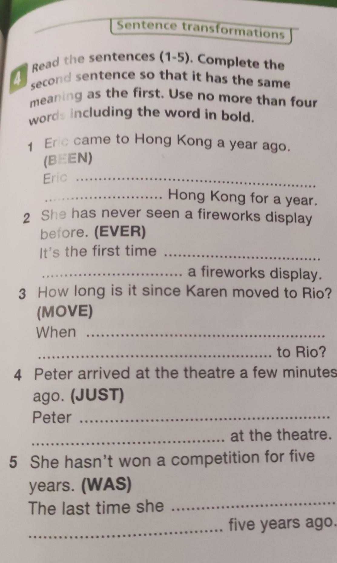 Read the sentences (1-5). Complete the second sentence so that it has the same meaning as the first. Use no more than four words including the word in bold.