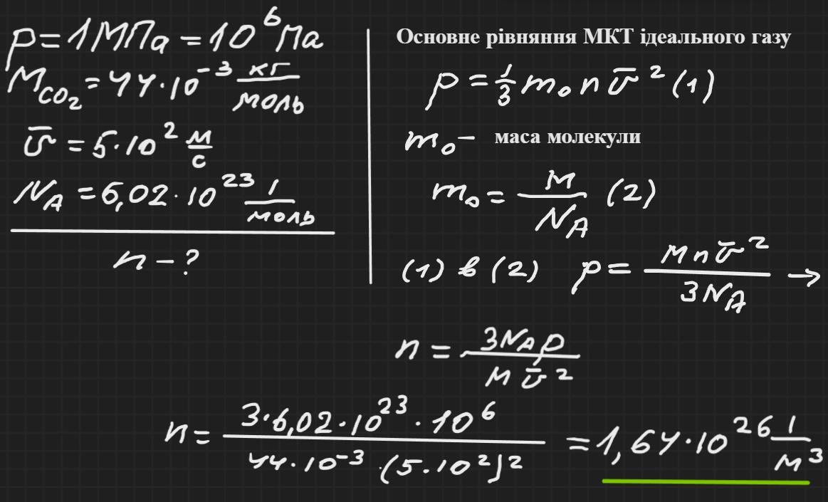 Знайти концентрацію молекул вуглекислого газу, якщо його тиск