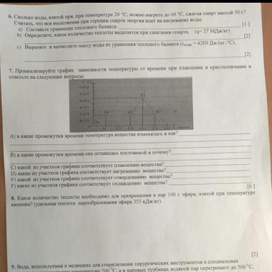 6. Сколько воды, взятой при, при температуре 20 °С, можно нагреть до 60 °С, сжигая спирт массой 50 г?