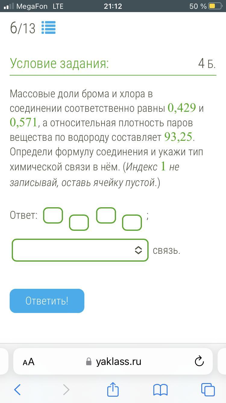 m(BrxCly) = D(H2) * M(H2) = 93,25 * 2 = 186,5 г/моль