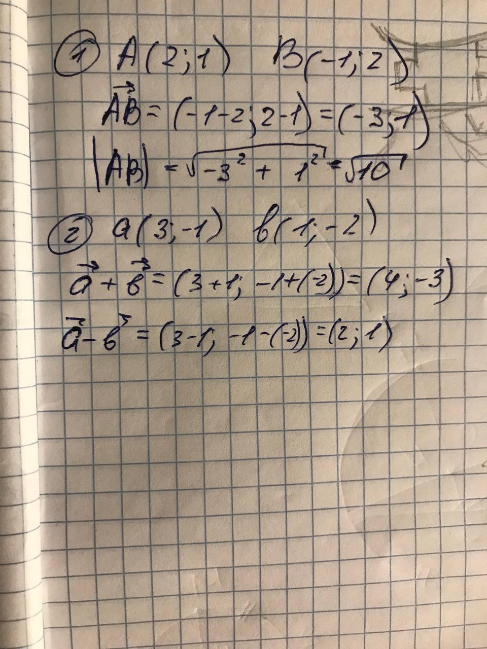 дано вектори а(3;-1) b(1;-2) знацдіть суму та рвзницю даних векторів