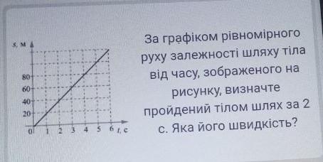 Ответ: За 2 с тіло проходить відстань 40 м згідно графіку, то його швидкість V=S/t=40/2=20м/с