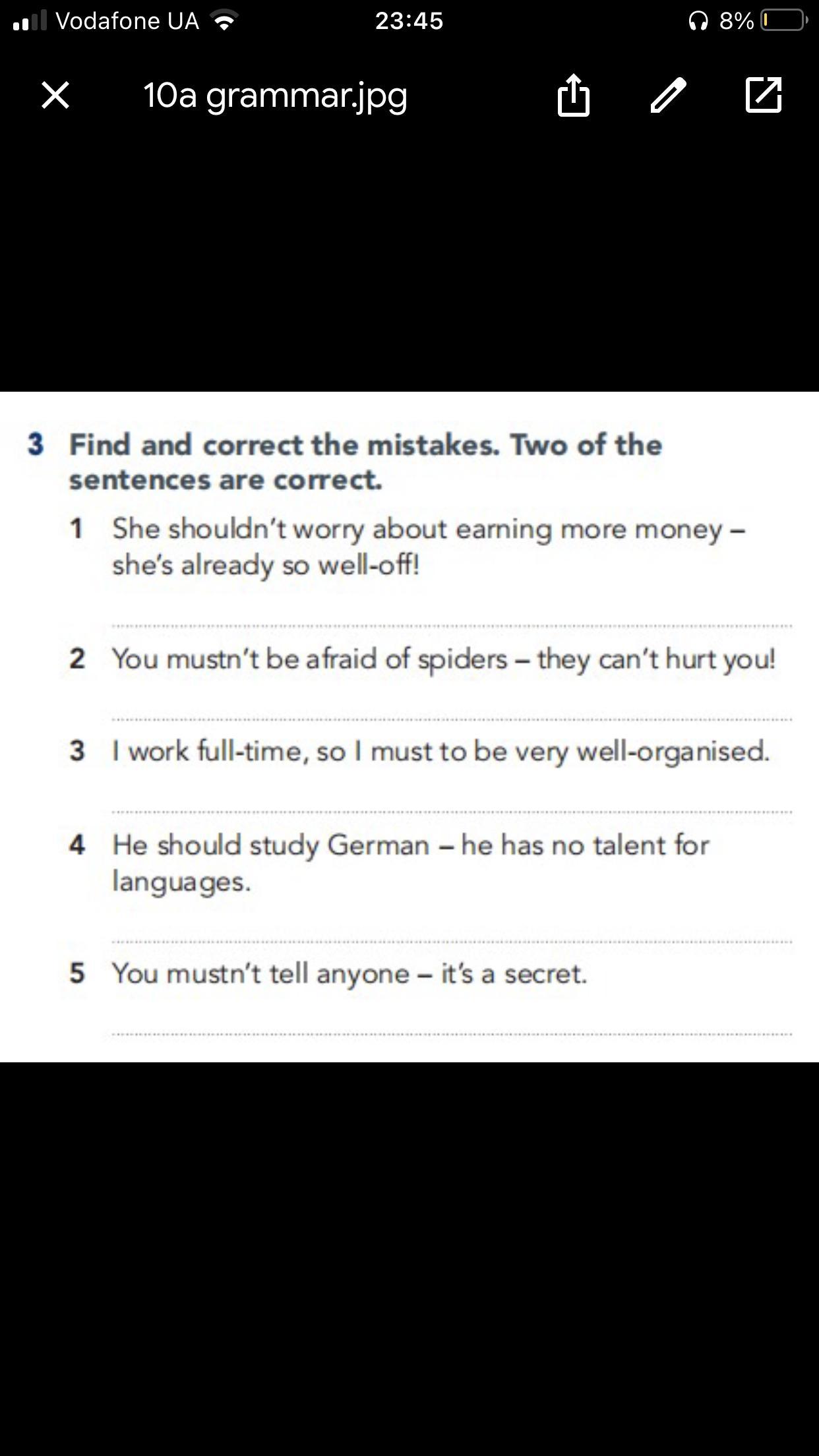 Это задание на модальные глаголы. Надо определить, где они употреблены неправильно, и исправить ошибки. Известно, что два предложения из пяти правильные.