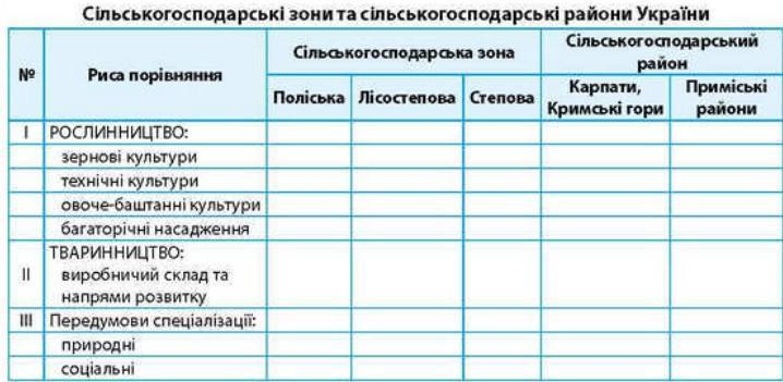 Заповніть таблицю, хто заповнить даю 50 балів. Сільськогосподарські зони та Сільськогосподарські райони України