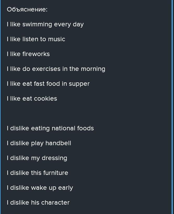 Task 3. Write 7-5 sentences about your likes connected with food (6-4 grades)