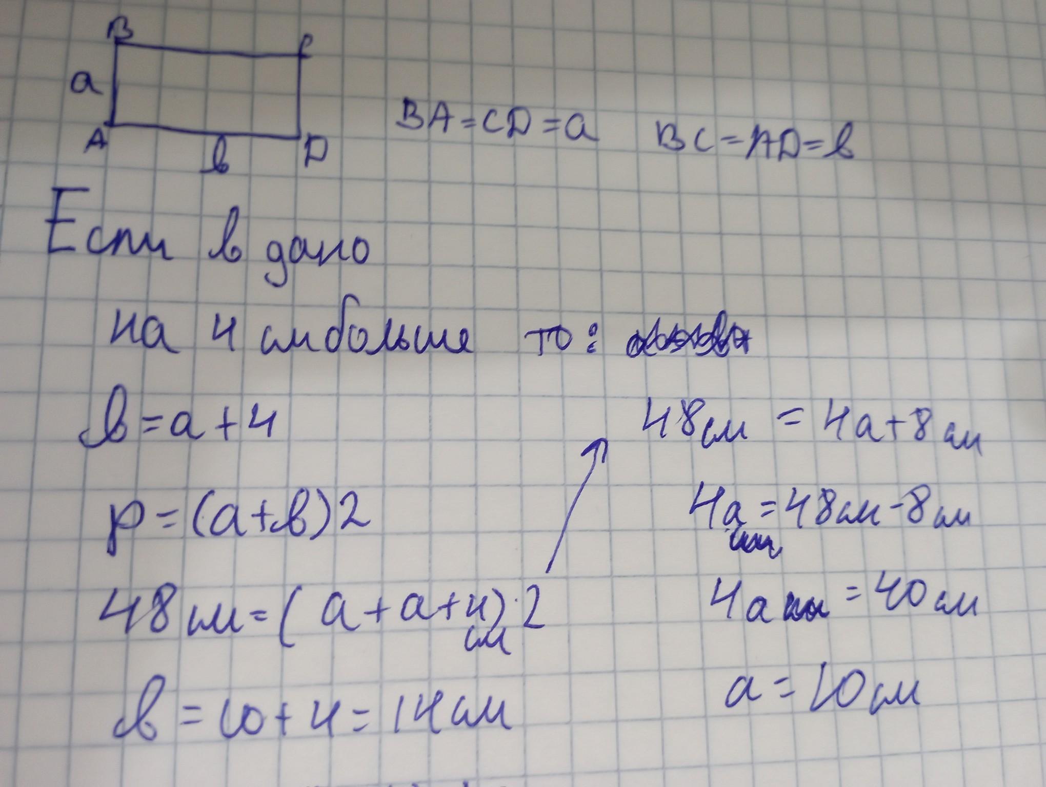 Знайдіть сторони прямокутника, периметр якого дорівнює 48см, а одна з сторін на 4см пж надо очень