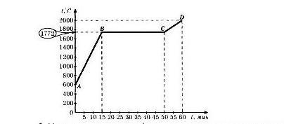6. На рисунке дан график нагревания и плавления платины. а) Сколько времени нагревалось вещество от 600 °С до температуры плавления? [1] b)Сколько времени длился процесс плавления? c)Назовите процесс на участке графика ВС. [1] [1]