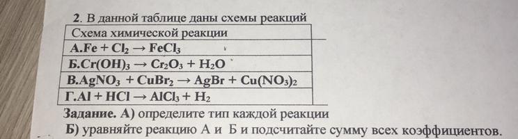 Задание. А) определите тип каждой реакции
