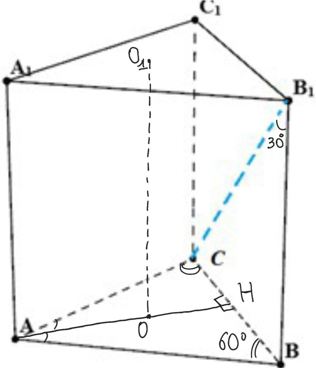 1) В ΔАНВ (∠АНВ=90°, ∠НВА=60°, т.к. АВСА1В1С1 — правильная треугольная призма, значит, ΔАВС - равностор.):