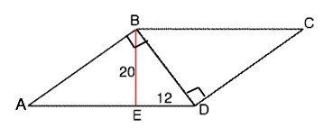 Найдите площадь паралерограмма ABCD, AB перпендикулярна BD, BE перпендикулярна AD, BE = 20 м, ED = 12 м. Найти площадь