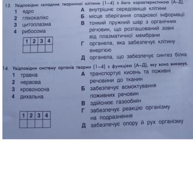 Увідповідни складник тваринної клітини (1-4) з його характеристикою (А-Д).