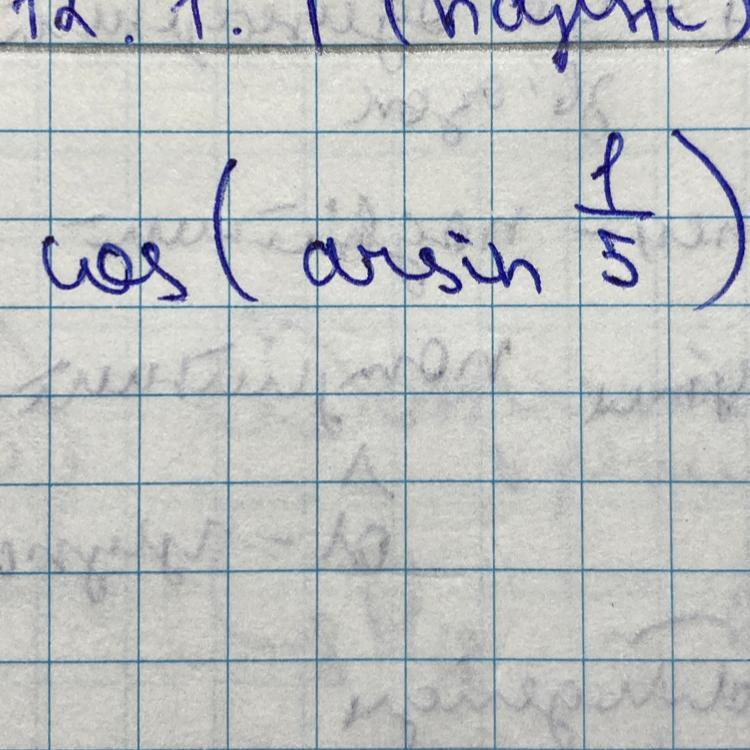 cos(arsin(1/5))=√(1-sin²(arsin1/5))=√(1-1/25)=2√6/5