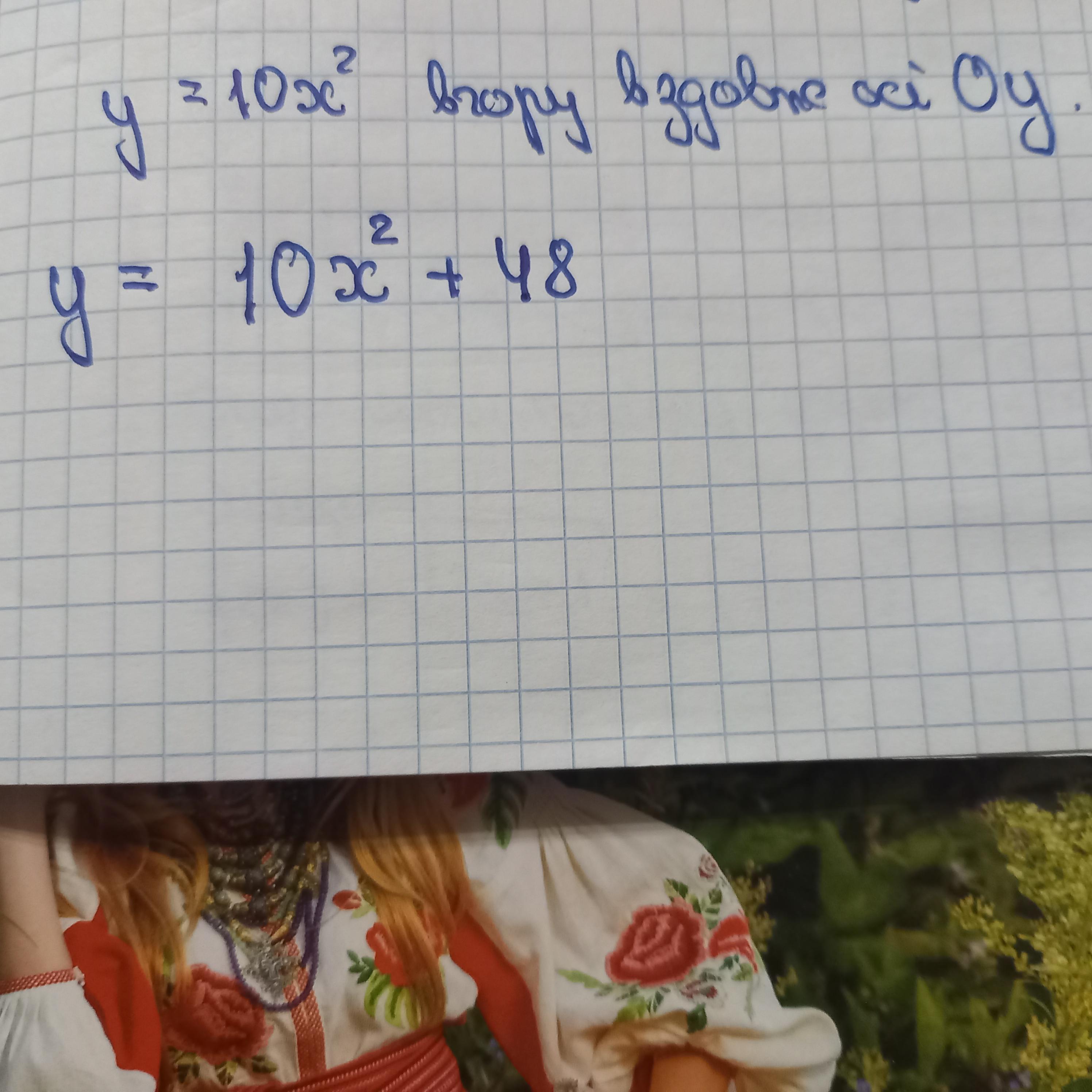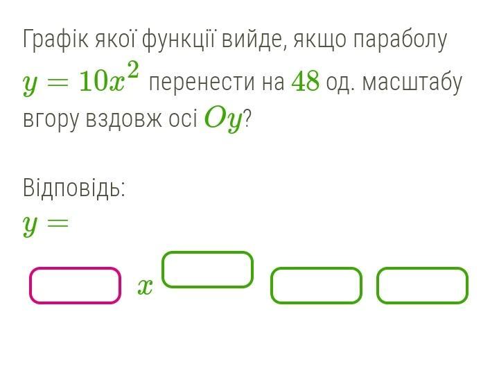 Графік якої функції вийде, якщо параболу y=10x2 перенести на 48 од. масштабу вгору вздовж осі Oy?