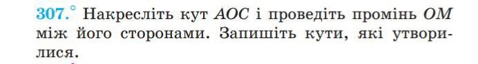307. Накресліть кут АОС і проведіть промінь ОМ між його сторонами. Запишіть кути, які утворилися.