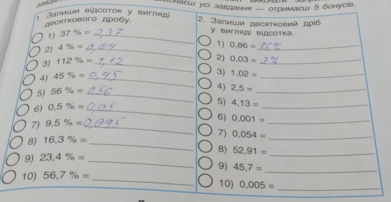 Для перетворення десятикових дробів в відсотки, їх необхідно помножити на 100