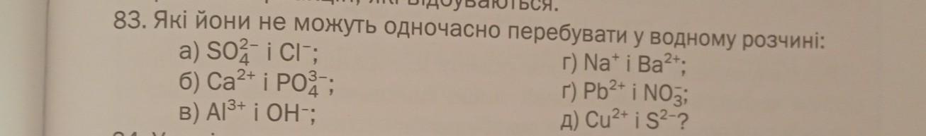 а, г, через те що в них однакові знаки а це робить перебування у водному розчині неможливим