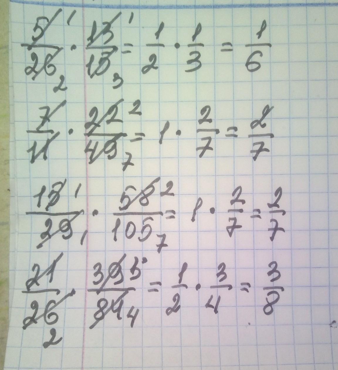 4) 21/26×39/84 = 1/2 * 3/4 = 3/8