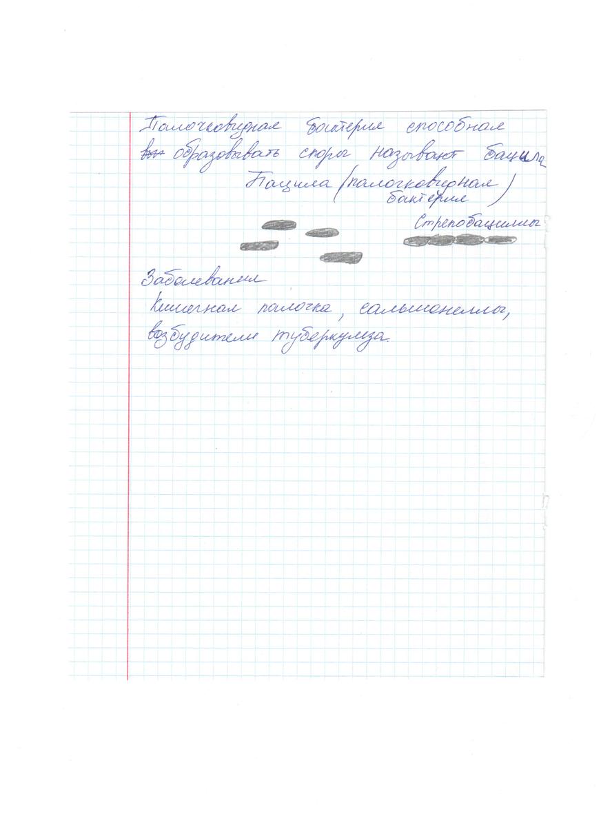 2) Рассмотрите рисунки бактериальных клеток и найдите на них клетки палочковидной формы. Нарисуйте их в тетрадь. Запишите примеры заболеваний, которыемогут вызвать эти бактеии.