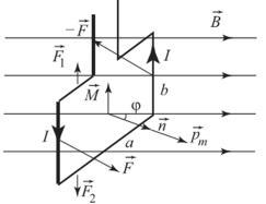 Таким образом модуль механического момента достигается в случае когда , то есть контур перпендикулярен к векторам магнитной индукции: