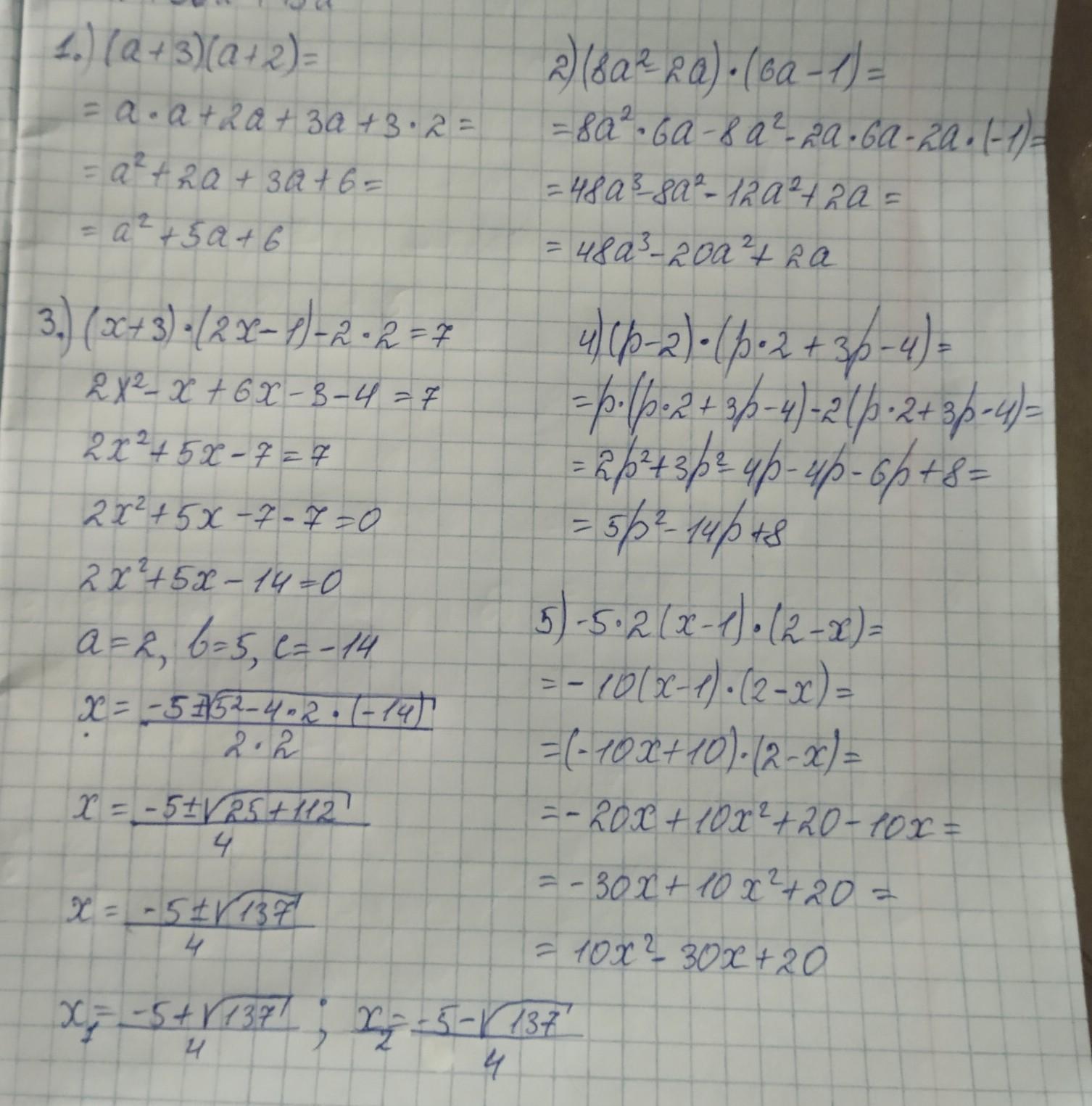 2. Розв'яжіть рівняння: 2) (8a² - 2a)(ба -1); (x + 3)(2x - 1) - 2x2 = 7;