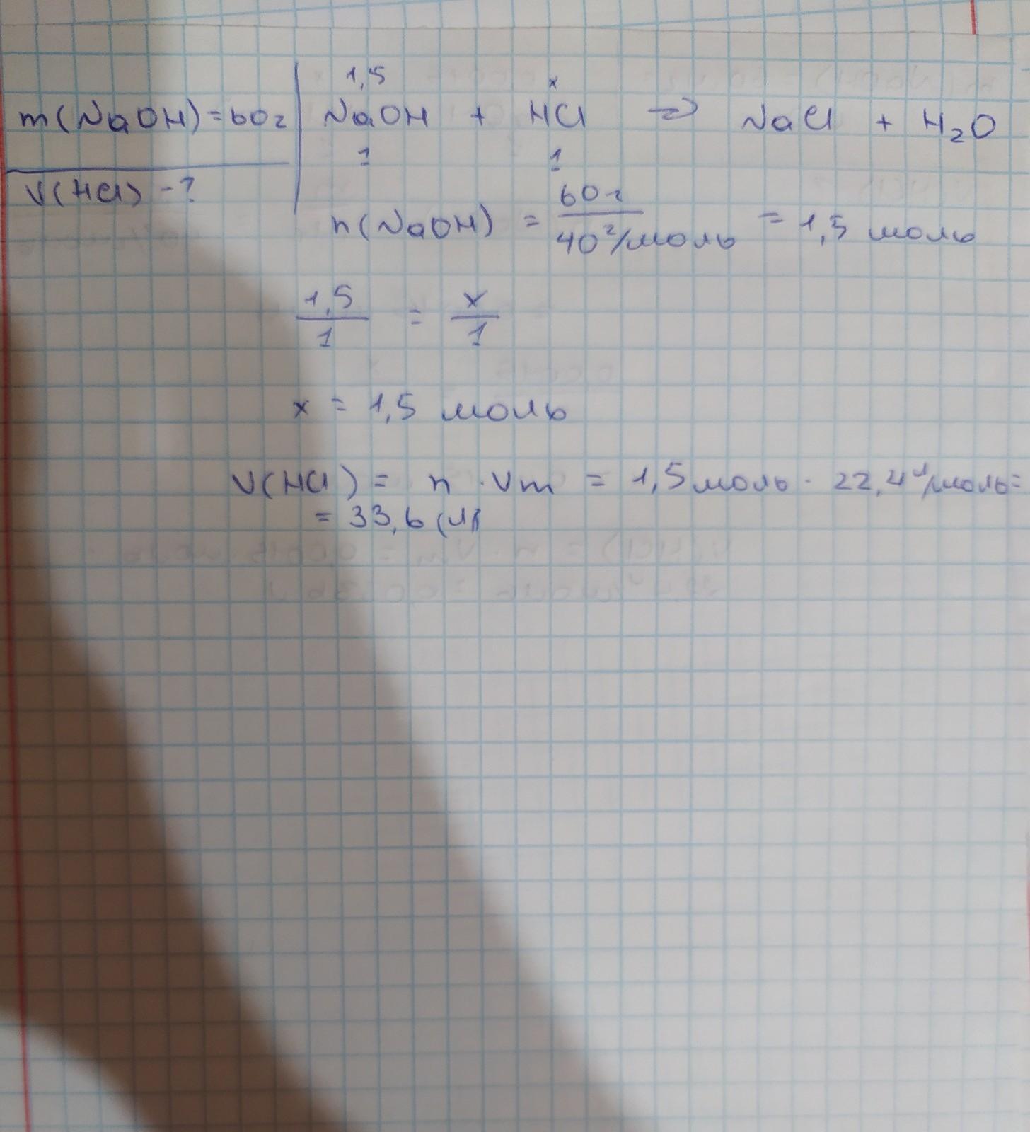 Какой объем хлороводорода необходим для нейтрализации 60грамм раствора гидроксида натрия?