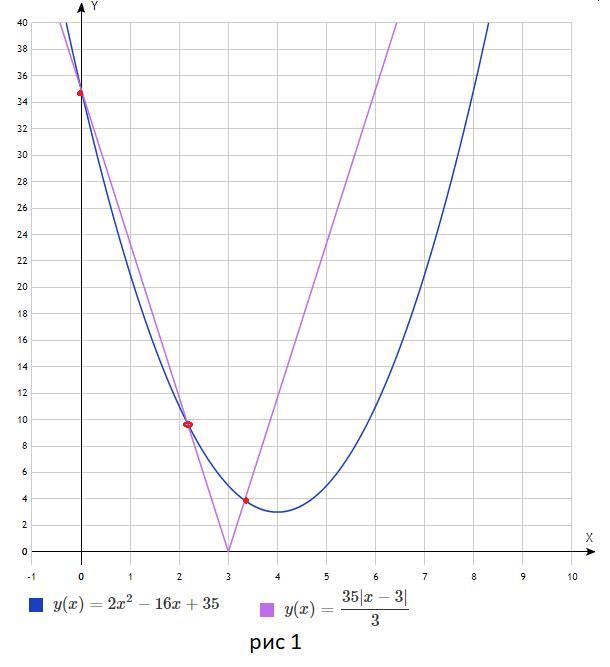 Парабола пересекает ось У в точке А(0;35)Парабола пересекает ось У в точке А(0;35), проверю значение параметра а при прохождении этой точки графиком модуля.