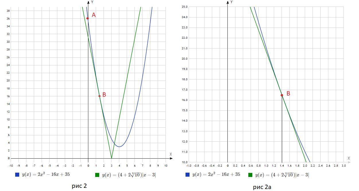 2x^2-16x+35=a(3-x) (точка касания В тоже будет левее х=3)