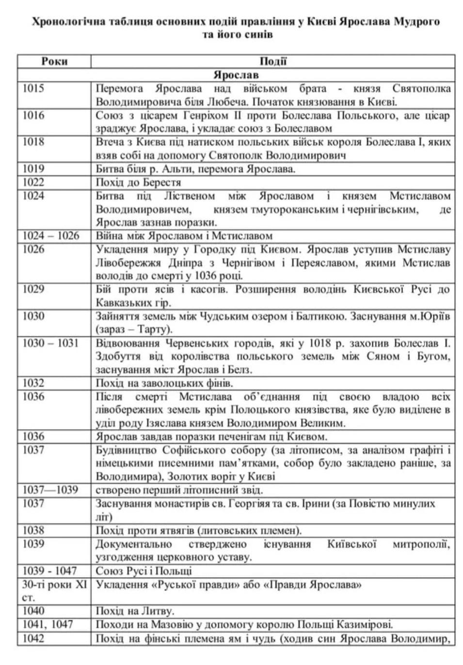 Історія України : розташуйте у хронологічній послідовності основні події правління князя Ярослава мудрого