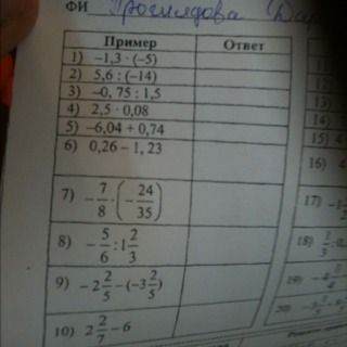 1) 6,5 2) -0,4 3)-0,5 4)0,2 5)-5,3 6)-0,97 7)0,6 8)-5/54 10) -38/7