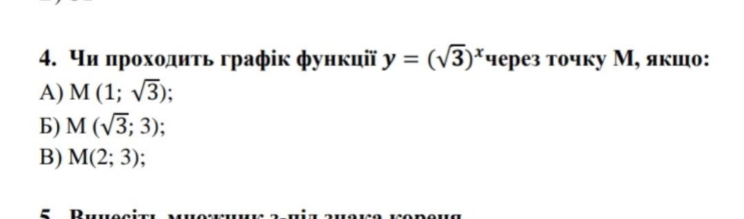 (√3)^1 = √3; √3 = √3 - верно, значит, точка М(1; √3) проходит через график функции.