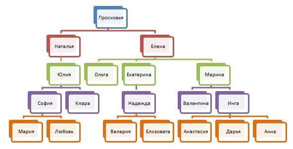 Маше задали в школе построить свое генеалогическое дерево, где отмечены одни женщины. Стрелка идет от матери к дочери. Как зовут внучку сестры прабабушки, у которой нет дочки Даши?