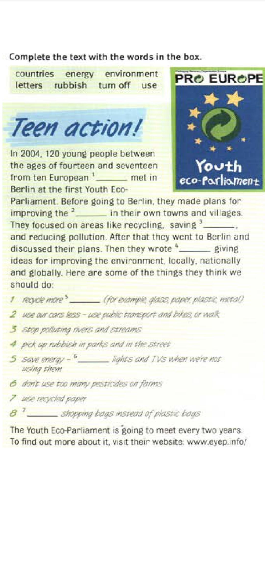recycle more rubbish - перерабатывать (для повторного использования) больше мусора