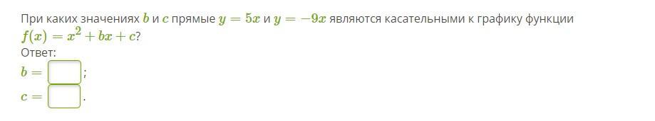 3. При каких b и c прямые y = 5x и y = – 9x являются касательными к графику функции y = x2 + bx + c?